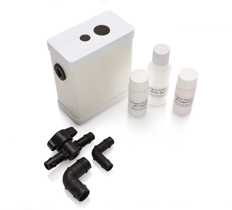 - Starter calibration solutions (pH 4, pH 7, EC)