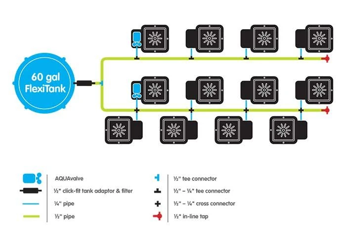 Includes new AQUAvalve 5 and 3/8″ tubing and fittings to deliver the widest range of nutrients in a faster flow for a quicker fill, maximizing system efficiency, and reducing maintenance and the risk of blockages.