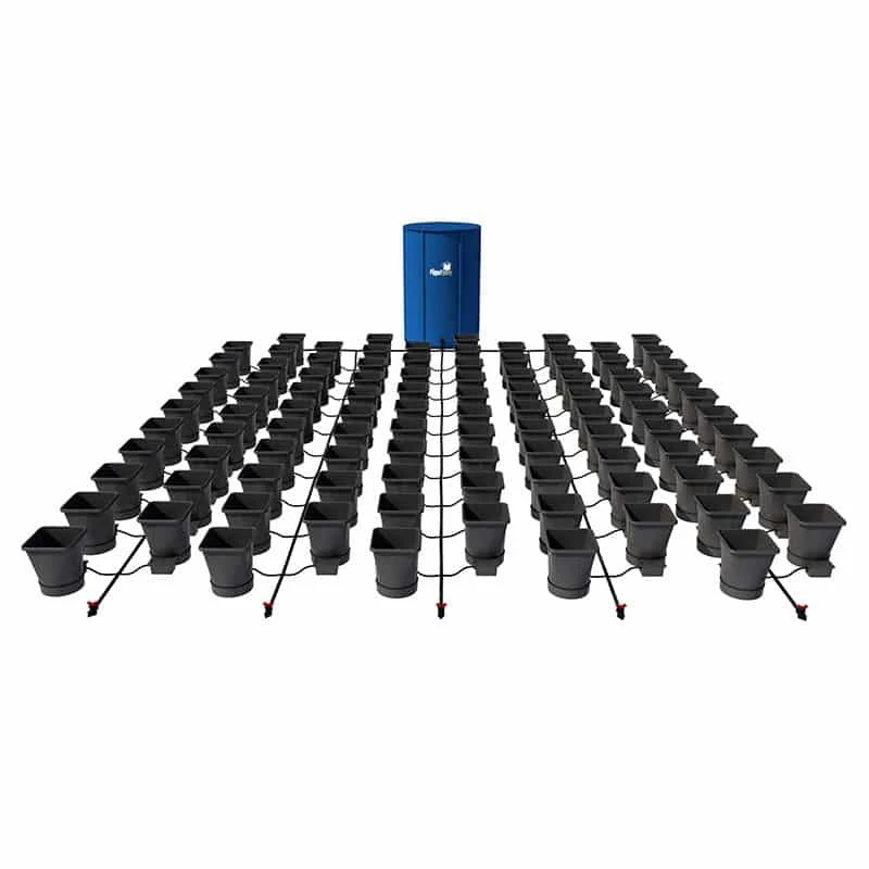 AutoPot offers a great solution – the FlexiTank – which is available in a number of different sizes to accommodate just about any sized AutoPot system. It comes with a 1/2″ shut-off valve and a Click Fit adapter that attaches directly onto the AutoPot standard or Pro Filter. The Pro version features a reflective, light-tight skin makes the FlexiTank Pro the perfect solution in bright, high temperature situations. Further enhancements come in the shape of internal capacity markings and an ultra-strong, anti-tip, fully collapsible design.