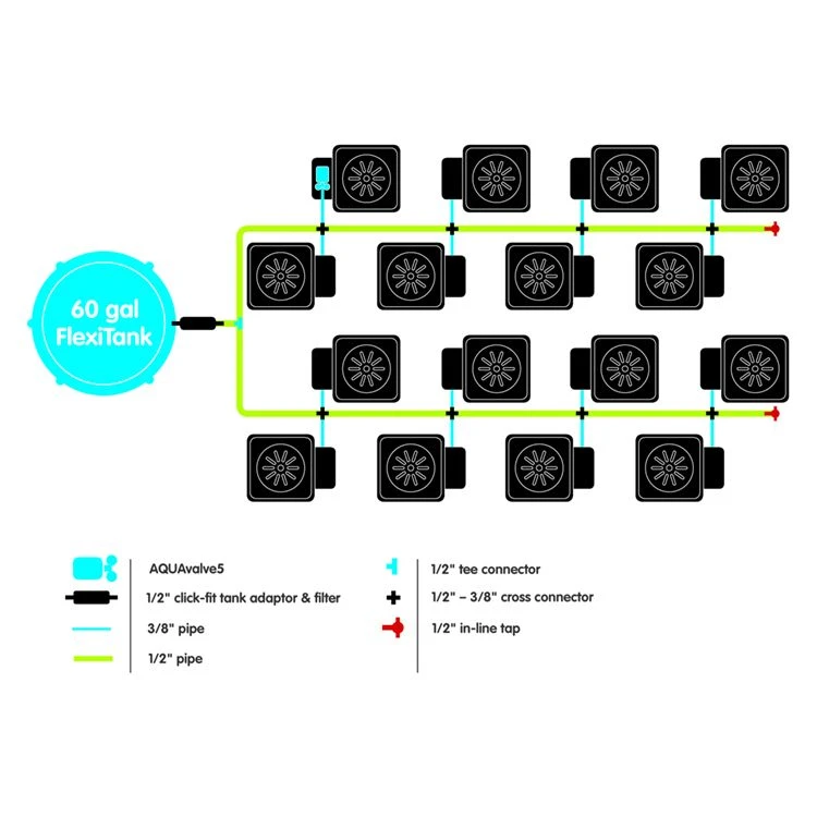 Includes new AQUAvalve 5 and 3/8″ tubing and fittings to deliver the widest range of nutrients in a faster flow for a quicker fill, maximizing system efficiency, and reducing maintenance and the risk of blockages.