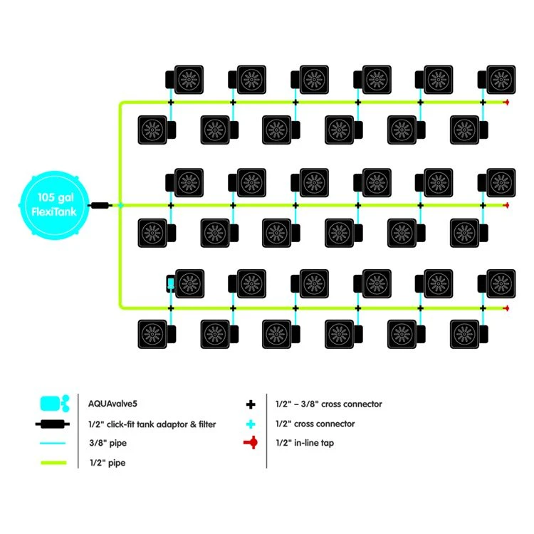 Includes new AQUAvalve 5 and 3/8″ tubing and fittings to deliver the widest range of nutrients in a faster flow for a quicker fill, maximizing system efficiency, and reducing maintenance and the risk of blockages.