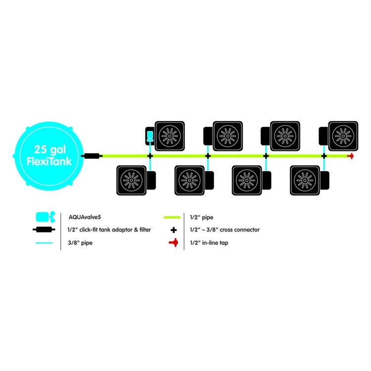 Includes new AQUAvalve 5 and 3/8″ tubing and fittings to deliver the widest range of nutrients in a faster flow for a quicker fill, maximizing system efficiency, and reducing maintenance and the risk of blockages.