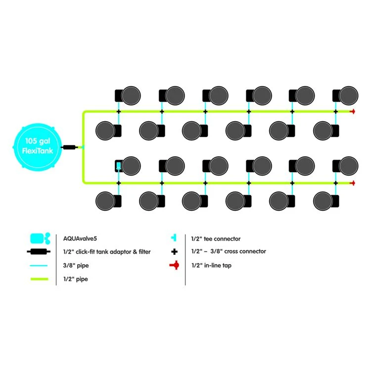 Includes new AQUAvalve 5 and 3/8″ tubing and fittings to deliver the widest range of nutrients in a faster flow for a quicker fill, maximizing system efficiency, and reducing maintenance and the risk of blockages.