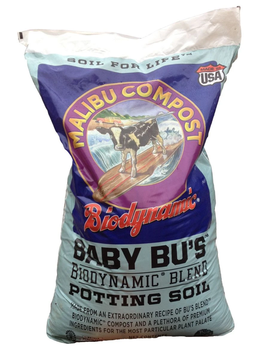 Baby Bu’s™ Biodynamic® Blend Potting Soil is made from a hand-crafted recipe that starts from a base of our signature Bu’s Blend™ Biodynamic® Compost. We then add the highest quality organic ingredients, ensuring Baby Bu™ is free from GMOs, pesticides, growth hormones, sewage sludge and synthetic chemicals. The result is potting soil that delivers nutrition in plant-preferred form for a full six weeks while being the sustainable choice for our planet! Ready-to-plant and ideal for seeds, seedlings & transplants in raised beds, pots, container gardens and hanging baskets. For use with all plant types.