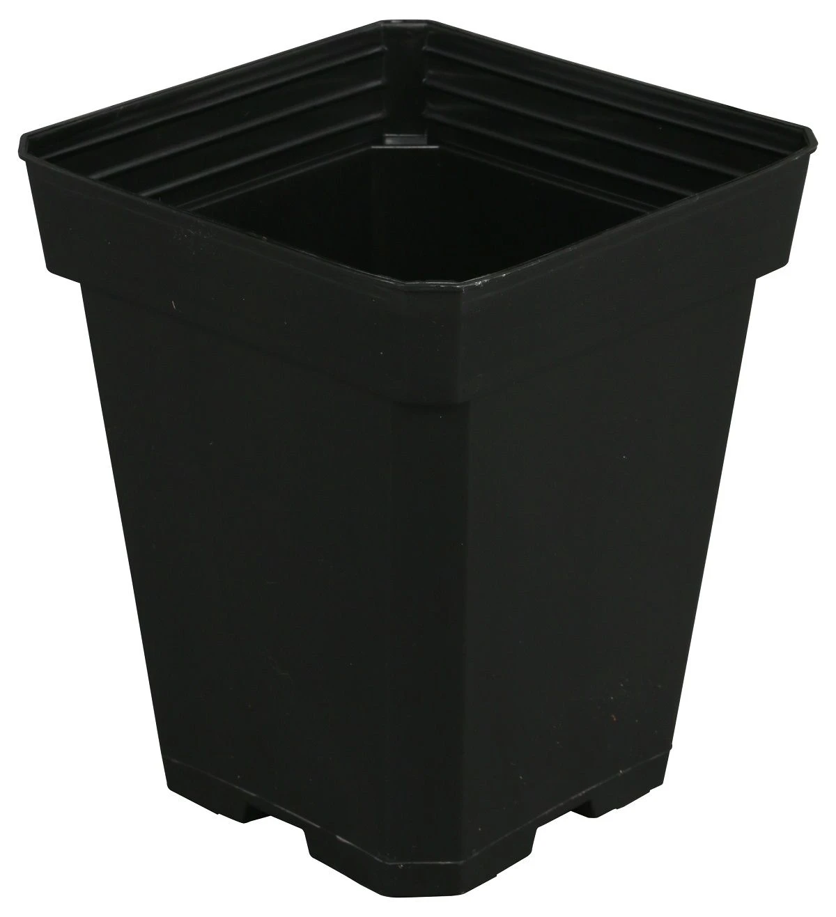 Square containers offer greater media capacity and a better fit in flood & drain trays. These pots are durable and versatile. They are injection molded containers manufactured with high-grade polypropylene. Drainage holes on bottom.