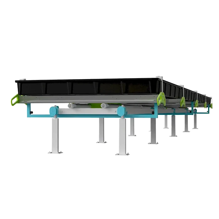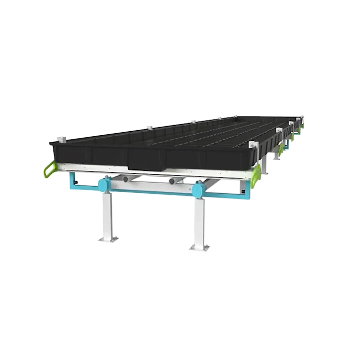 This system allows growers to modify length, optional working height, variable aisle width and drainage slope to adapt to any growing style, greenhouse or room size.