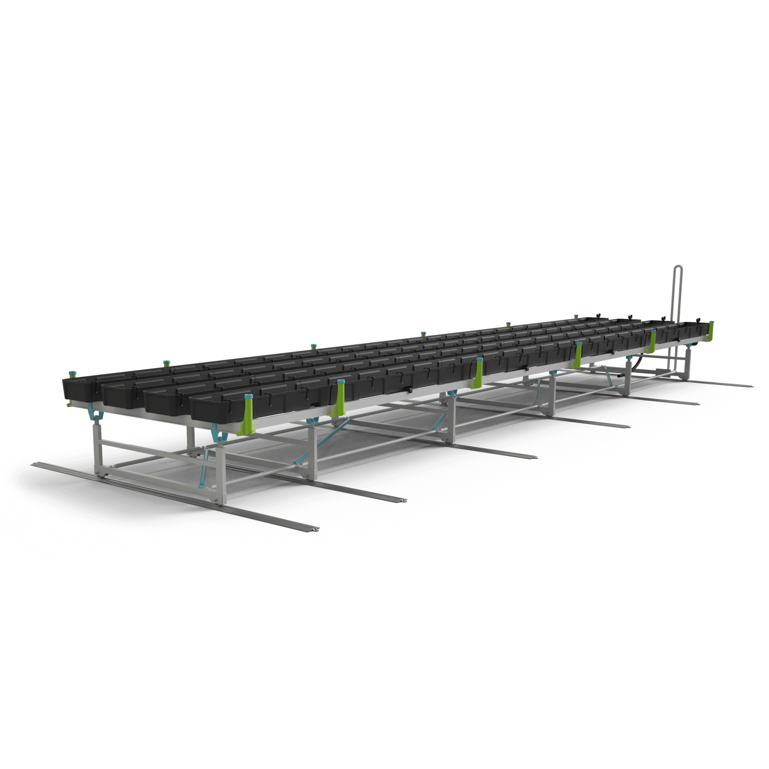 Botanicare Track Bench is thoughtfully engineered for effortless lateral movement, no hand crank needed.