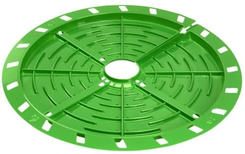 In the Matrix System water and nutrients travel into the Circulator, hit the slope of the Matrix and are pushed outward into eight maze sections that have individual holes dripping the water and nutrients onto the Wicking Pad. There are eight slices to the pie, each section is fed the same amount, going through the maze for even distribution. The Matrix pad is a capillary mat used for wicking.