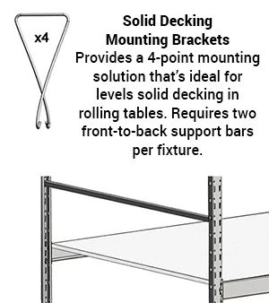 Includes four (4) Solid Decking Mounts (enough to hang a single fixture).