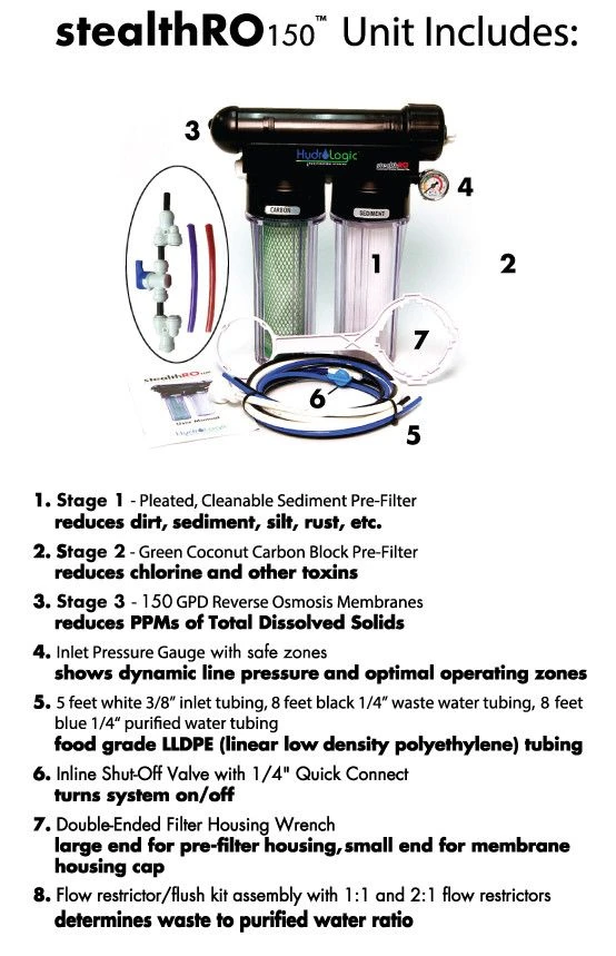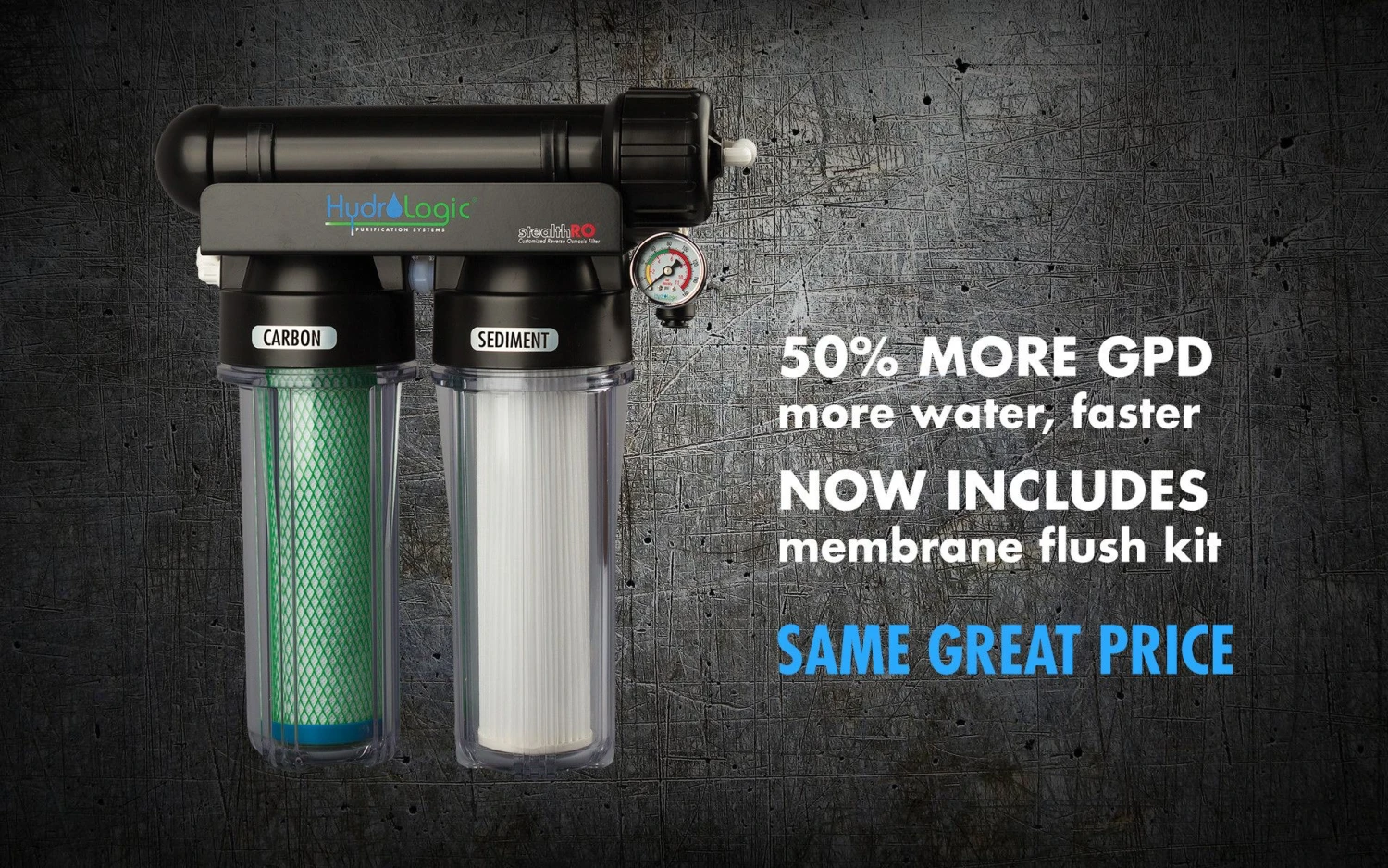 Hydro-Logic is proud to introduce the latest in their Stealth line of reverse osmosis systems – the Stealth RO150. New features include: 50% higher capacity (150 GPD vs. 100 GPD), 1:1 and 2:1 ratios now included in the box, as well as their Membrane Power Flush Kit to keep your system running as efficiently as possible.