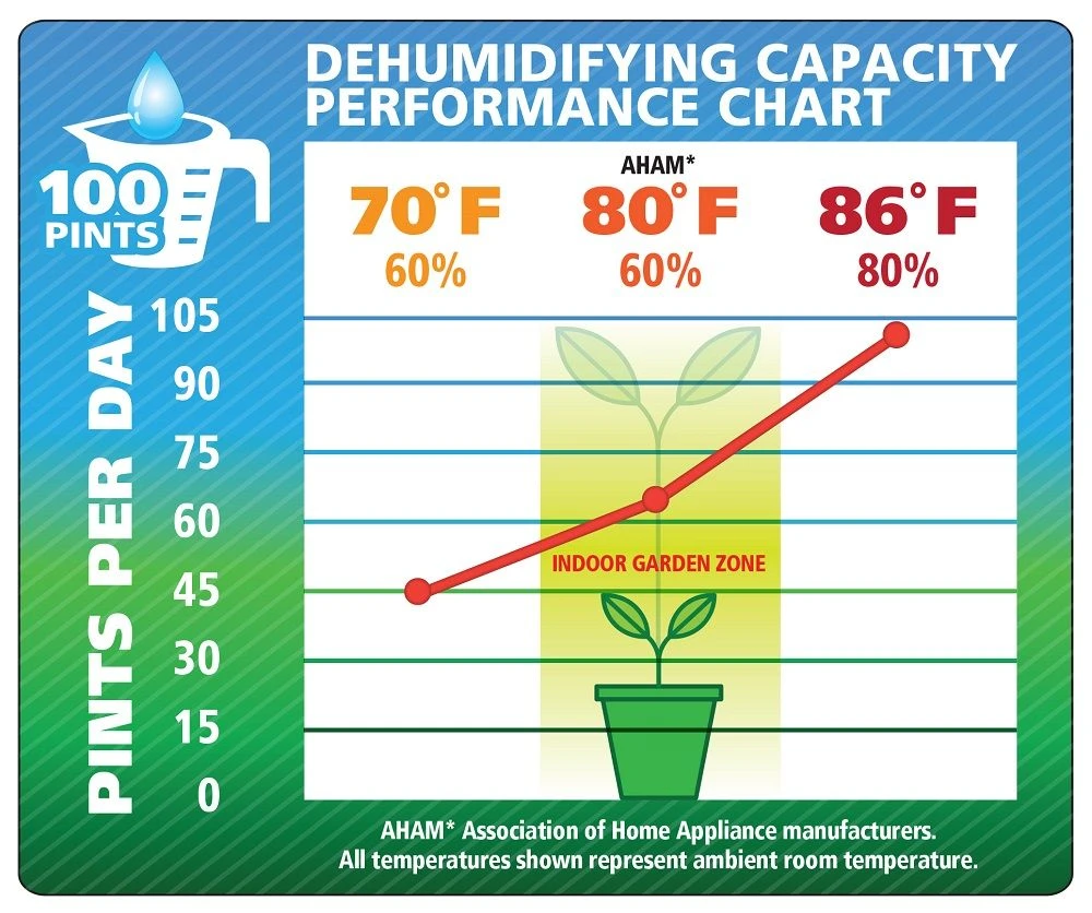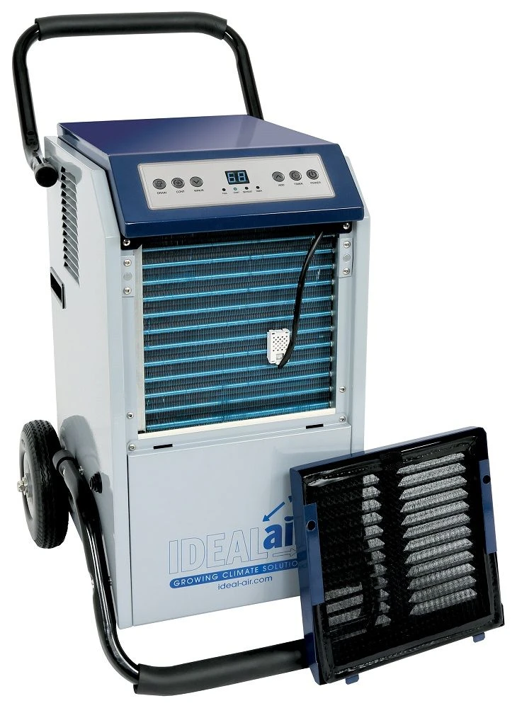 Ideal-Air™ Pro Series 100 pint dehumidifier has automatic restart if power is lost. Easy to use digital display humidity readings, internal condensate pump, removable washable filter, 1 speed fan motor, powder coated metal casing for long life & a heavy duty compressor. Built-in defrost that is designed for operation down to 41°F. Set upright on their feet for 3 hrs. prior to use. 100 Pint unit: Temp. Range: 41°F- 95°F, condensation removal: (24 hrs) 100 pints (86°F, 80% rH); Power: 6.75 Amps/728 Watts; Supply Voltage: 115V-1 Phase-60Hz; R410A. Ideal-Air™ recommends that dehumidifiers use surge protectors (700522) and a dedicated electrical circuit. In the event of a power failure, a spike in voltage may occur when the power is reinstated. This can damage the circuit board which is not covered under warranty.