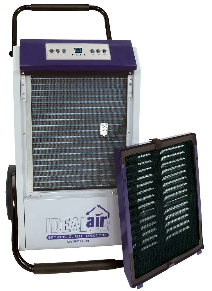 Ideal-Air™ Pro Series 180 pint dehumidifier has automatic restart if power is lost. Easy to use digital display humidity readings, internal condensate pump, removable washable filter, 1 speed fan motor, powder coated metal casing for long life & a heavy duty compressor. Built-in defrost that is designed for operation down to 41°F. Set upright on their feet for 3 hrs. prior to use. 180 Pint unit: Temp. Range: 41°F- 95°F, condensation removal: (24 hrs) 180 pints (86°F, 80% rH); Power: 12.31 Amps/1350 Watts; Supply Voltage: 115V-1 Phase-60Hz; R410A. Ideal-Air™ recommends that dehumidifiers use surge protectors and a dedicated electrical circuit. In the event of a power failure, a spike in voltage may occur when the power is reinstated. This can damage the circuit board which is not covered under warranty.