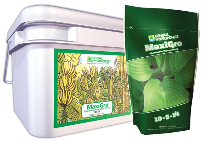MaxiGro and MaxiBloom are extremely potent, stand-alone, water-soluble, dry concentrate nutrients. Complete in primary, secondary and micro nutrients, pH buffered MaxiGro and MaxiBloom will provide superior results when used with a wide variety of crops in both hydroponic and soil-based environments. MaxiGro encourages growth of seedlings, cuttings and stimulates rapid growth through the “vegetative” growth stage.