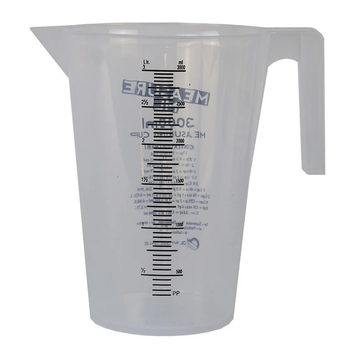 The Measure Me Plastic Cup is a utensil used primarily to measure the volume of liquid or bulk solid ingredients. It features an easy to read conversion chart of all popular measurements for quick reference. The Measure Me Plastic Cup is made of translucent durable and virtually un-breakable plastic. Measured product volume can be easily read from the scale marked on the inside. Available in a wide range of sizes for 250ml to 5000ml to fit everyones needs.