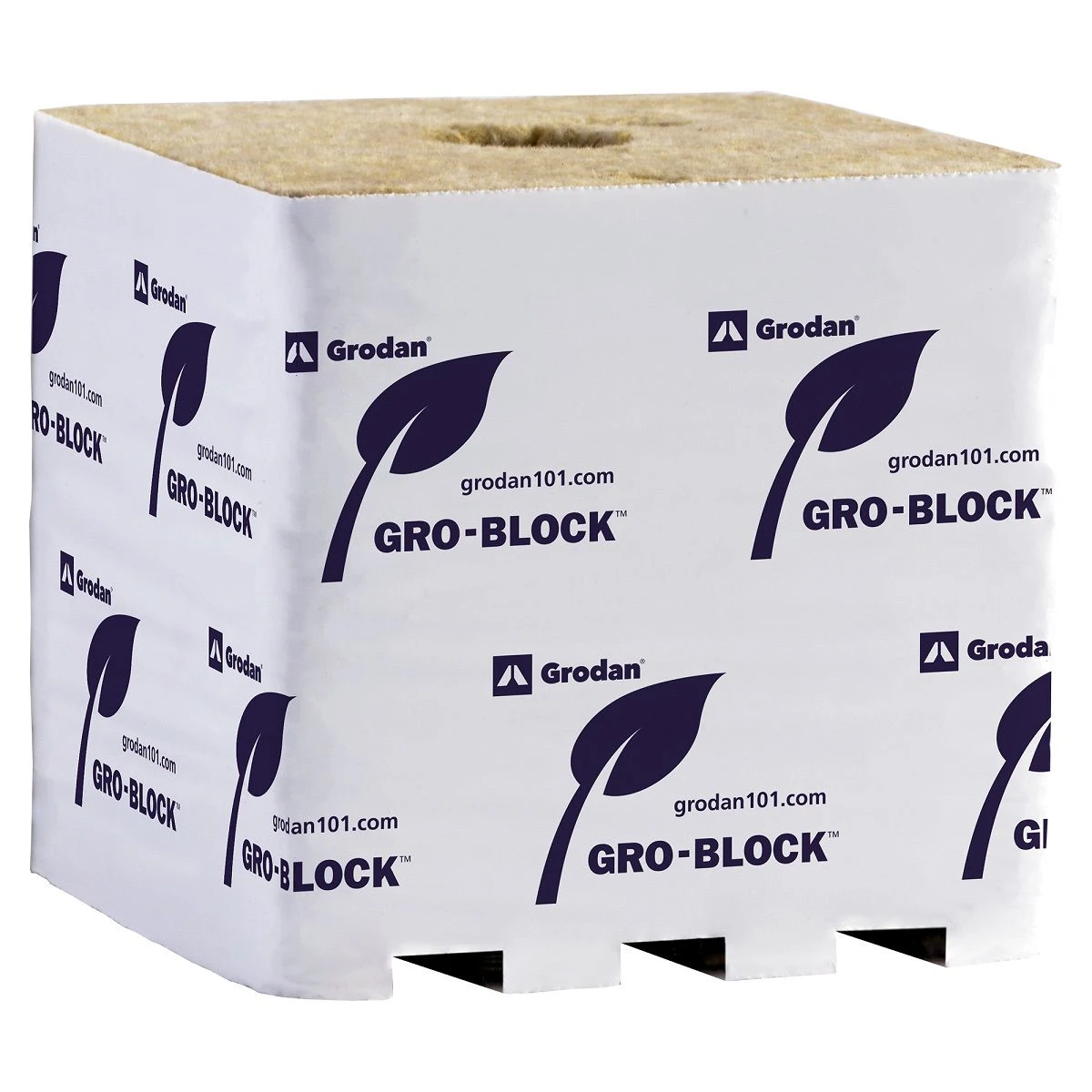 Grodan Rockwool Mini-Blocks are great choice for rooting cuttings. We recommend soaking them in pH 5.5 water before planting up with seeds or clones. Keep them under a dome to retain moisture and mist if necessary. From here, you can transplant into any growing medium, soil or hydro.
