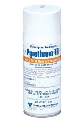 This is our most popular fogger for treating large rooms (10′ x 10′ and larger). This pyrethrum total release fogger is for use in large grow rooms and greenhouses. Controls Angoumois Grain Moths, Ants, Aphids, Beetles (Colorado Potato Beetle, Confused Flour Beetles, Cucumber Beetle, Dried Fruit Beetles, Flea Beetle, Japanese Beetles, Red Flour Beetles, Watermelon Beetles), Cabbage Worms, Cadelles, Centipedes, Cockroaches, Crickets, Fleas, Flies, Fungus Gnats, Hornworms, House Flies, Indian Meal Moths, Leafhoppers, Mealybugs, Mediterranean Flour Moths, Mites, Moths, Rose Aphids, Rose Chafers, Rose Slugs, Scale, Silverfish, Spider Mites, Spiders, Trogaderma, Weevils (Granary Weevils, Mealworms, Rice Weevils), Thrips and Whiteflies. Labeled for use on 33 different vegetable crops and 94 ornamental and flowering plants. One can covers up to 3000 square feet, or up to 24000 cubic feet.