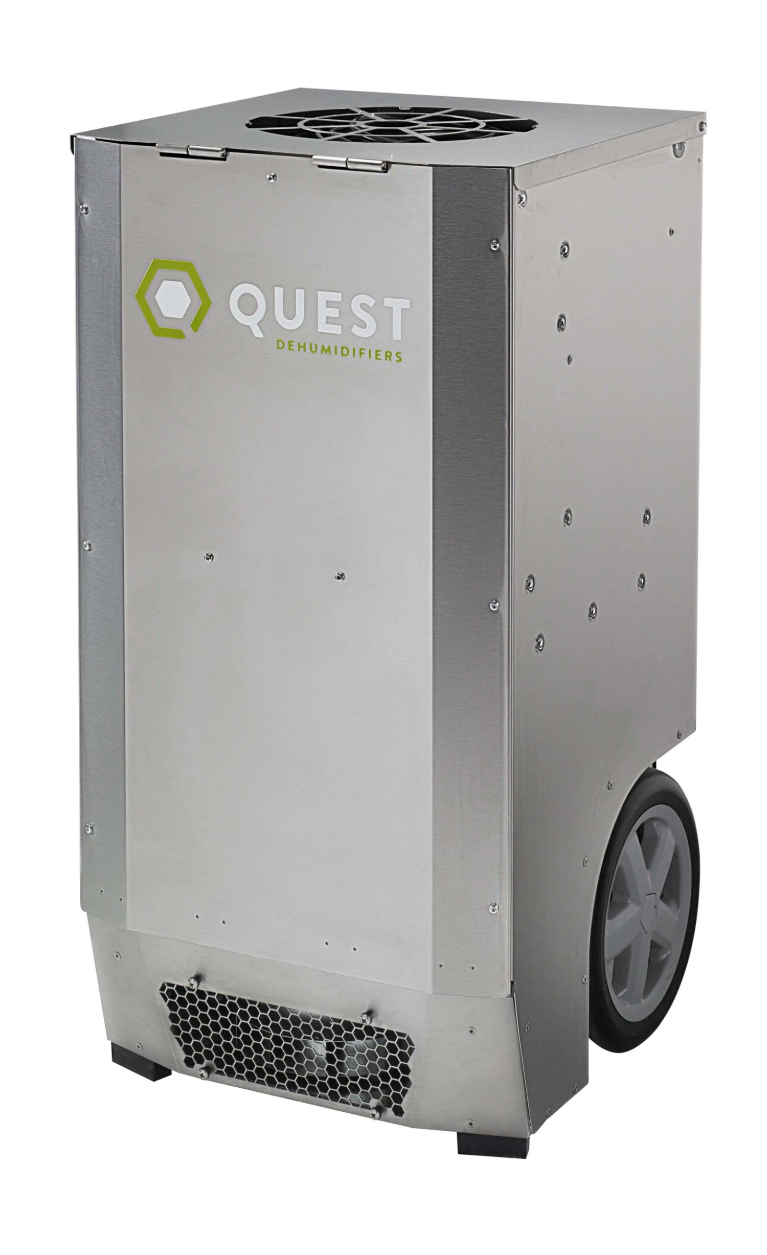 Quest CDG174 dehumidifies 176 pints/day @ 80°F/60% rH and only uses 10 amps. Quest CDG174 is constructed of the highest quality components and is protected by a heavy duty stainless steel case. Includes a high capacity pleated filter. The superior Merv-8 filtration of the CDG174 is designed to capture mold, spores, pollen and dust – effectively cleansing the room of dangerous particles. Lightweight and portable at only 135 pounds with 12 inch wheels and retractable handle with 20 ft 120V power cord. Has flexible controls and a small footprint at 23 in x 40 in. Includes an internal pump with 33 ft detachable hose.