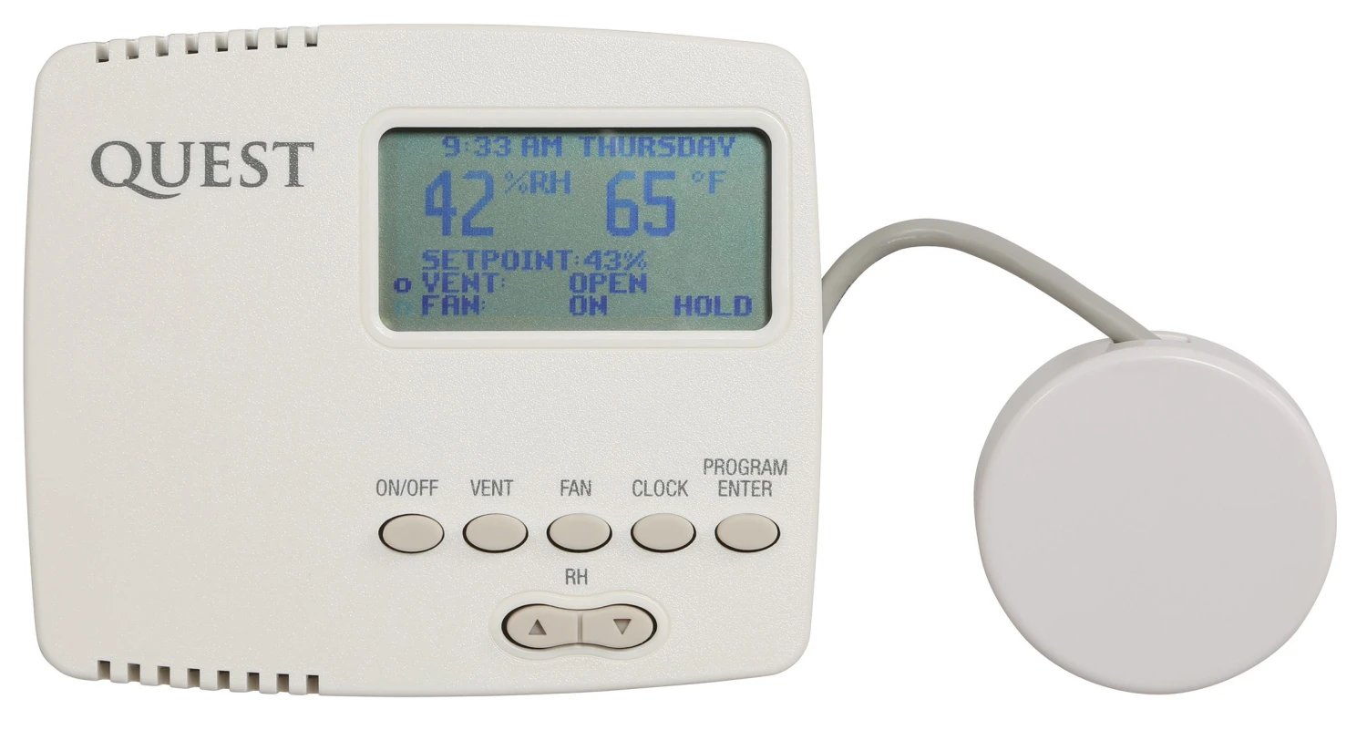 Quest DEH 3000R remote wall mounted digital control for Quest ventilating dehumidifiers. Works with Quest Dual 105, 155, 185, 205, 225 and 506.
