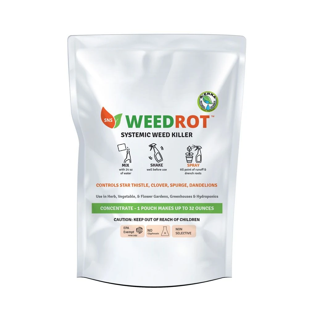 - SNS-Weed Rot™ is a Systemic Post Emergence Non-Selective Weed Killer. It works by removing the waxy layer and penetrates deep into the roots to stop the plant from taking in amino acids and nutrients.