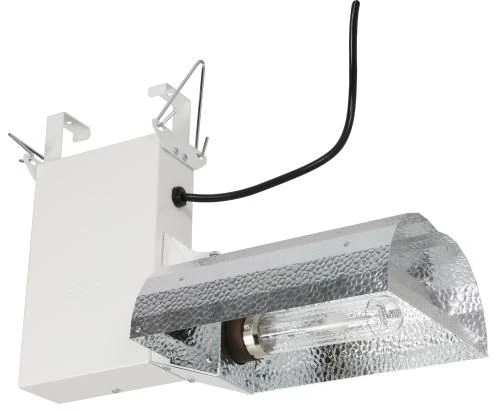 Sun System® LEC® 315 Commercial utilizes cutting edge Light Emitting Ceramic® technology. State-of-the-art 95% reflective German aluminum interior offers unparalleled output, reflectivity and diffusion. Includes Philips highly efficient agriculturally engineered CDM-T Elite 315 Agro Lamp. This lamp creates amazing full color light spectrum out of next generation ceramic lamps. Higher amounts of beneficial UV and far red spectrums increase the lamp’s growth power to the plants. Very high 1.95 PPF per second light source (3100° K lamp). 3100° K or 4200° K color temperature, high 92 CRI, 33,000 initial lumens (105Lm/W). Long life 20,000 hour lamp. High 90% lumen maintenance @ 8000 hr. High 85% PPF maintenance @ 20,000 hr. Unique open rated lamp construction reduces radiant heat from the arc tube and is suitable for open fixture use. The LEC® 315 Commercial has a Philips 50/60 Hz low frequency, square wave, highly efficient electronic ballast rated for 50,000 hour ballast life. The compact commercial design to minimize greenhouse sunlight blockage. Power cord/plug configuration varies by fixture voltage. Detachable unistrut mounting hangers or traditional V-hangers. US Patent Pending: 29/518,803.