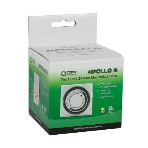 The The Dual Outlet – 24 hour programmable timer is the perfect timing solution for your high wattage lighting or hydro systems. With two outlets and a 15 amp capacity, it’s easy to set to run CO2 systems, pumps, fans, ozone generators, etc. and the 15A/1800W capacity means you can use it to control lighting systems as well. The The Dual Outlet Analog Timer has 96 non-detachable 15 minute trippers and can be configured in numerous timing schedules to meet the most demanding timing requirements. It also features a manual on/off override switch. These timers are grounded and extremely easy to use with most indoor appliances.